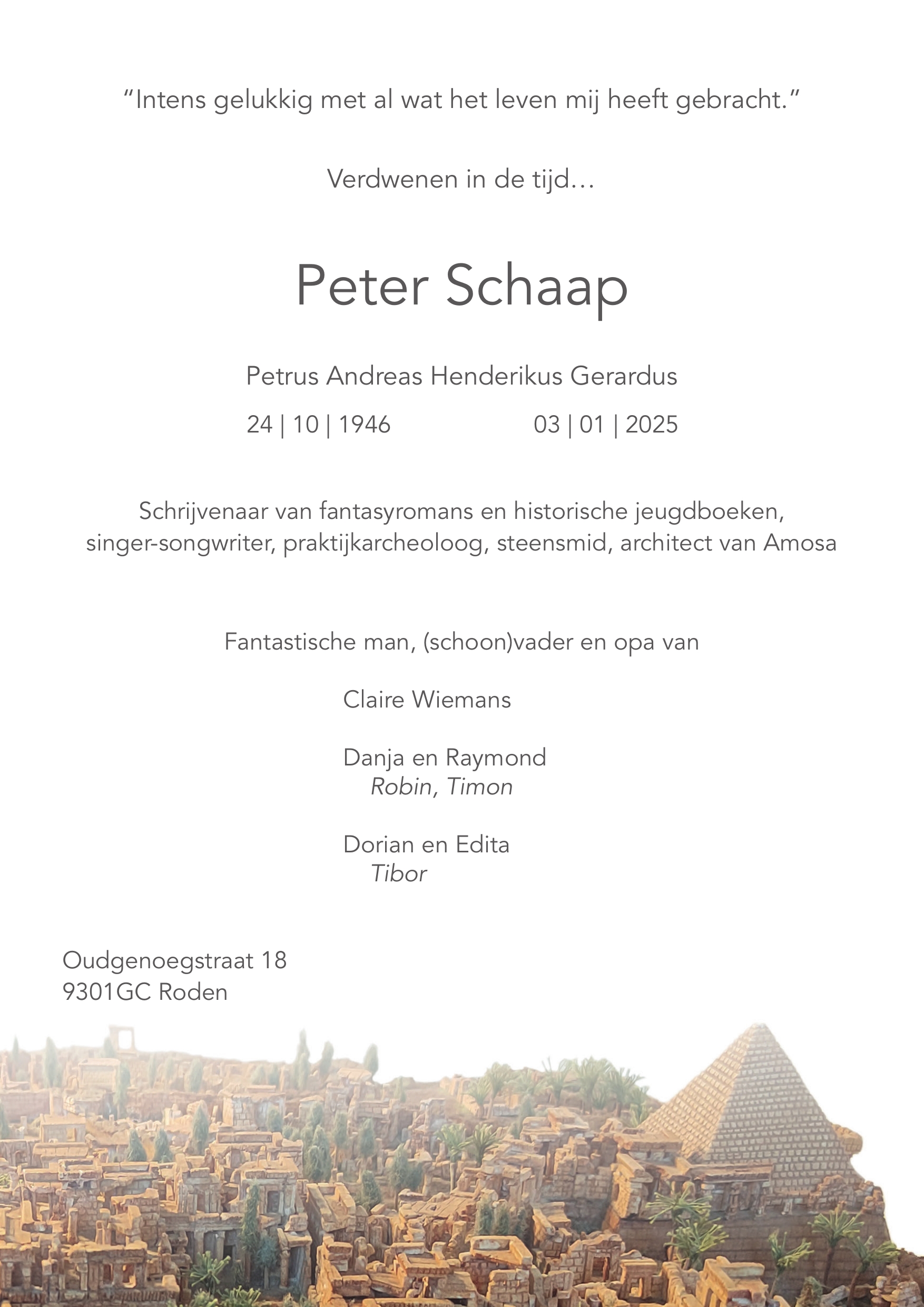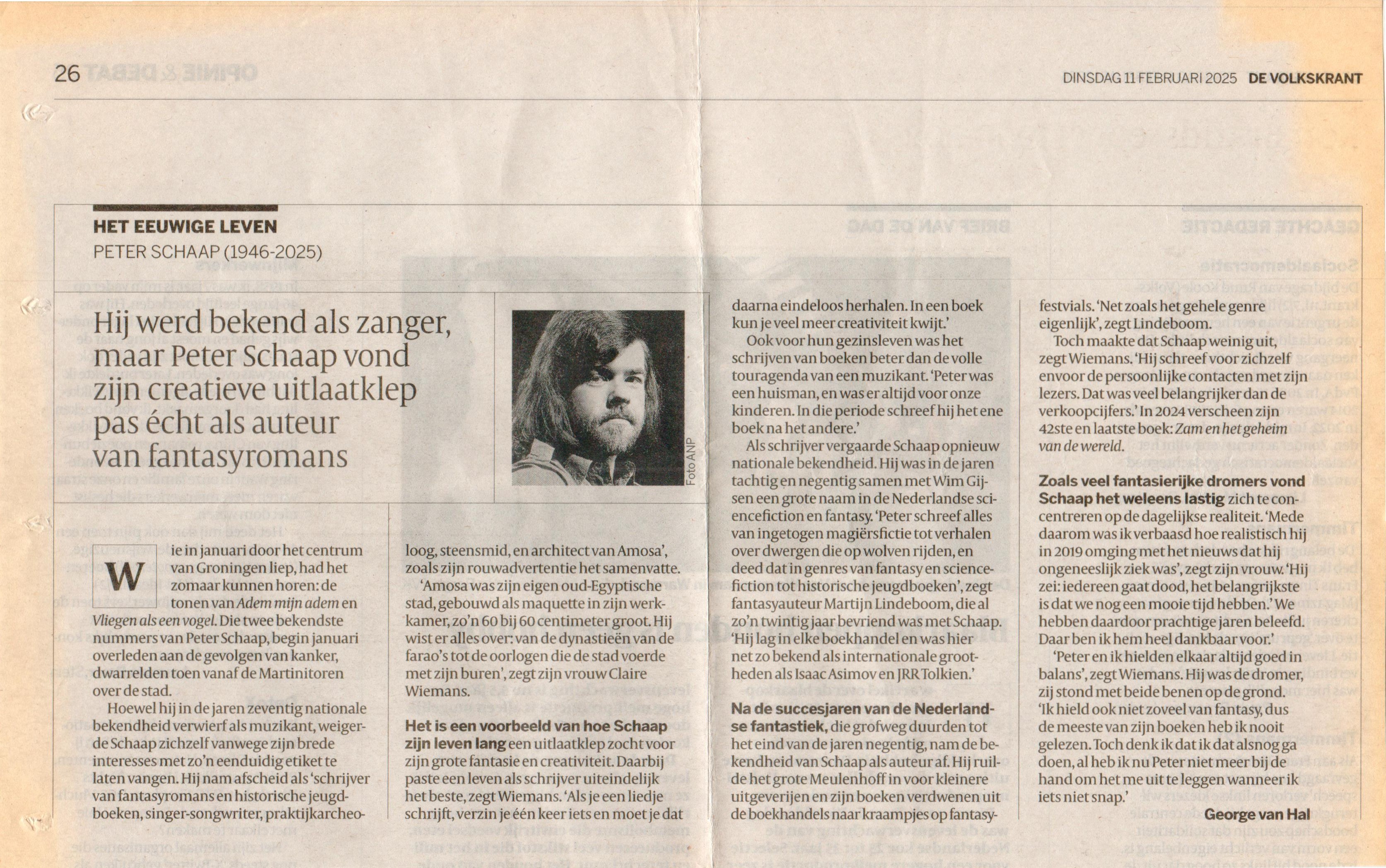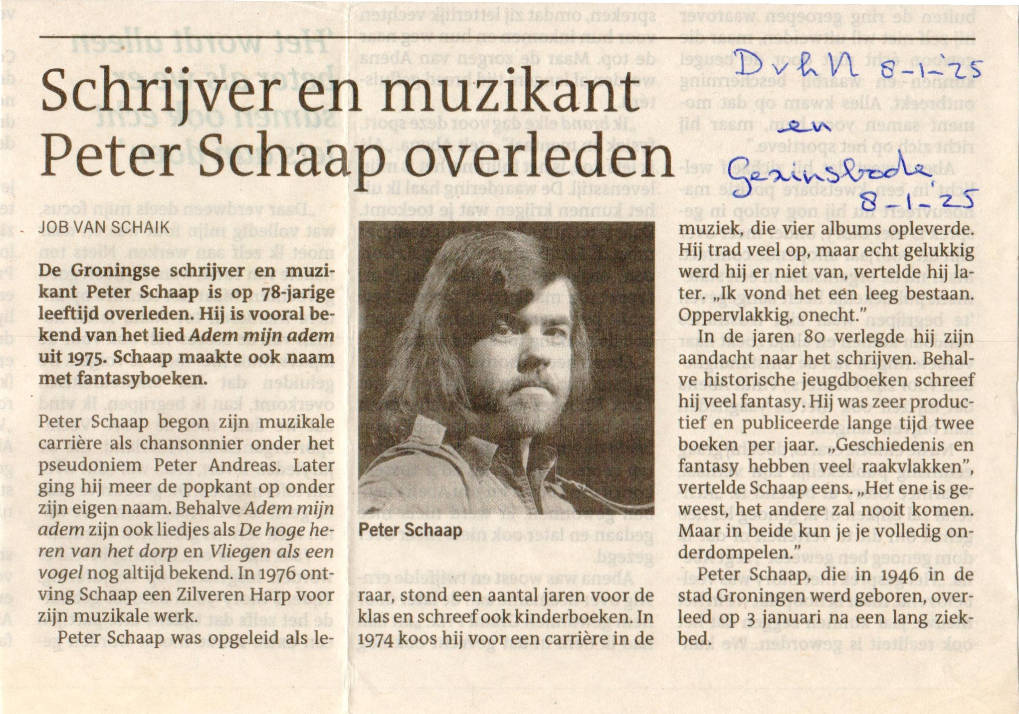 Peter Schaap overleed op 3 januari 2025.